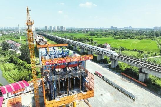 7月25日,荊荊鐵路四標段中鐵十二局集團跨江漢運河項目建設(shè)正酣,東岸箱梁已初具雛形。當前,荊荊鐵路項目四標段橋涵工程已完成71%,路基工程已完成48%,鐵路全線轉(zhuǎn)入架梁、軌道鋪設(shè)系統(tǒng)線上施工階段。(孫楊郇欣攝)