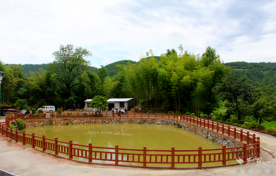 竹林之上,一棵450年的皂莢樹旁,當(dāng)家塘石岸成環(huán),仿古式護(hù)欄勾勒出這口清水塘的模樣。踩在塘畔的行道磚上,望著村民整潔寬敞的房舍,水泥路到家門口,車子開到塆里頭。