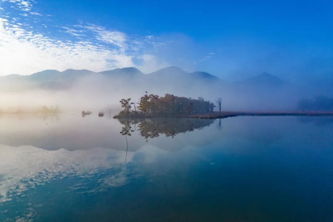 秋季的大九湖,草地鮮花盛開、五彩斑斕,湖面時而明凈如鏡,時而薄霧繚繞;