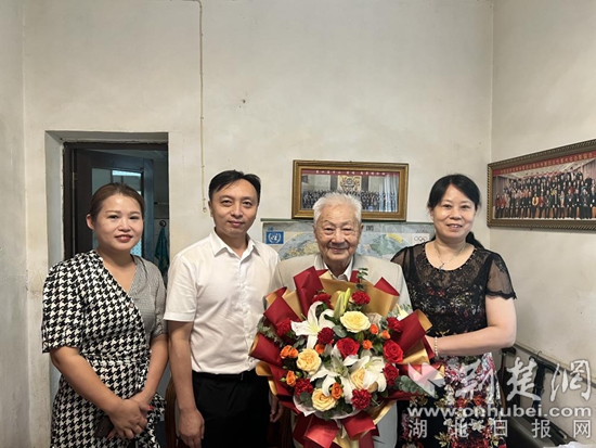 荊楚網(wǎng)(湖北日?qǐng)?bào)網(wǎng))訊(記者王焱堯、金康 通訊員汪麗平、程子瑩)8月1日,鄂州市政協(xié)副主席余子悅一行,前往百歲抗戰(zhàn)老兵譚天健老人家中,祝賀譚老百歲壽辰。此前,鄂州市委統(tǒng)戰(zhàn)部也向譚老發(fā)去百歲壽辰賀信。