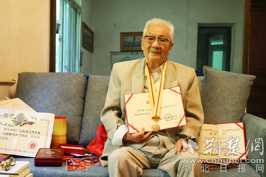 8月1日,在原鄂城水泥廠宿舍,100歲的譚天健老人,身著米色西服,雖滿頭花發(fā)但精神矍鑠,言語(yǔ)中氣十足。
