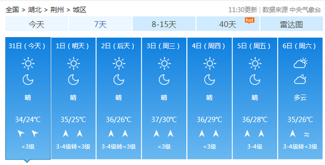 荊州未來一周的天氣情況
