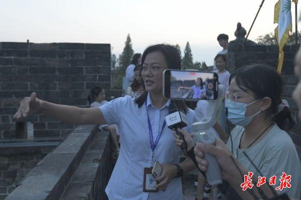 荊州古城文化旅游發(fā)展有限公司古城墻景區(qū)經(jīng)理朱芳正在介紹荊州古城墻?!∮浾邊卧娢摹z