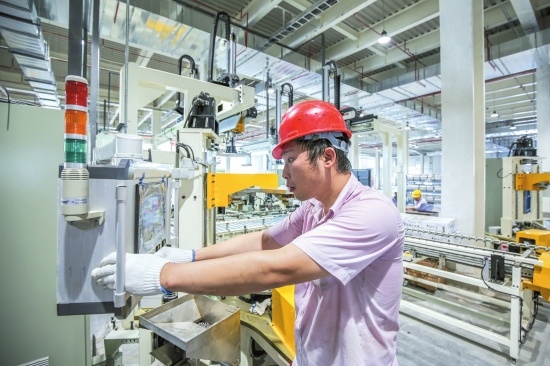 美的洗衣機荊州產(chǎn)業(yè)園新建車間內(nèi),工作人員正在調(diào)試儀器。