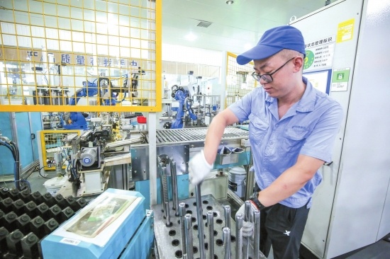 荊州恒隆汽車零部件制造有限公司,技術(shù)人員認真操作設(shè)備。