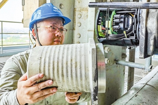 國能長源荊州熱電有限公司生產(chǎn)廠區(qū),工人仔細檢查設(shè)備。(通訊員劉珍攝)