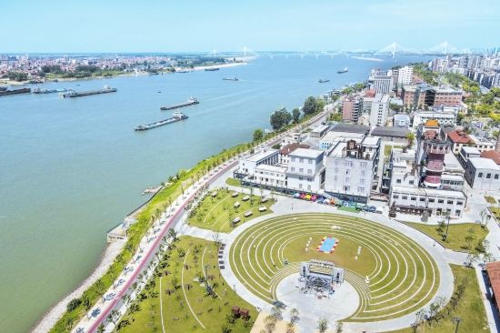 8月8日,無人機航拍沙市洋碼頭文創(chuàng)園二期項目,原活力28廠房、打包廠等處的歷史建筑通過修繕已煥發(fā)新生。