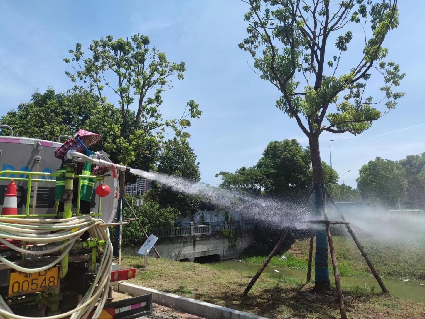 同時,考慮到夏季高溫特點,確保生產(chǎn)作業(yè)和人員安全兩不誤,根據(jù)市城管執(zhí)法委要求,市公園管理處合理調(diào)整時間,避開上午11:30到下午15:30高溫時段澆水抗旱作業(yè),采取“輪班作業(yè)、歇人不歇設(shè)備”的方式,確保苗木澆灌效率。