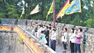 探訪(fǎng)團(tuán)成員登上荊州古城墻。 長(zhǎng)江日?qǐng)?bào)記者李子云 攝