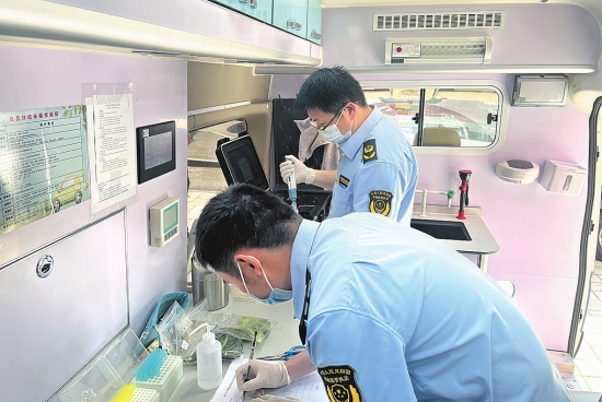 市場監(jiān)管部門組織快檢車對網(wǎng)絡餐飲經(jīng)營戶開展食品安全快檢。