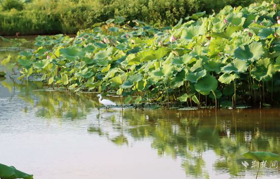 映日荷田,白鷺“筑”園。胡小軍 攝