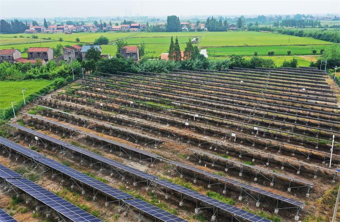 8月26日,位于江陵縣馬家寨鄉(xiāng)楊淵村五組的3150塊多晶硅光伏電池板正在巧妙運用光合作用發(fā)電,從空中俯瞰,每塊組件猶如一塊塊疊加的鋼琴鍵盤,與之不同的是它美妙無聲。