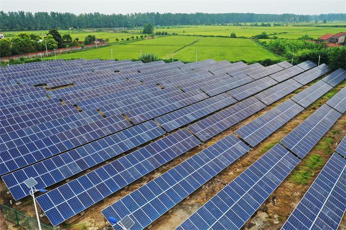 楊淵村光伏發(fā)電項目是江陵縣2018年的聯(lián)建項目,總投資680萬元,占地面積約2萬平方米,裝機容量為850KW。村級光伏電站系統(tǒng)以固定支架形式安裝于地面,系統(tǒng)配套3150塊270Wp多晶硅光伏組件,含500KW組串式并網(wǎng)逆變器2臺,10臺光伏防雷智能匯流箱等相應配置。它的建成,既是鄉(xiāng)村振興的一大亮點,又帶動了村集體經濟,同時還為國家電網(wǎng)輸送了大量能源。截至目前,該電站年發(fā)電量約100萬KWh左右,創(chuàng)收85萬元。