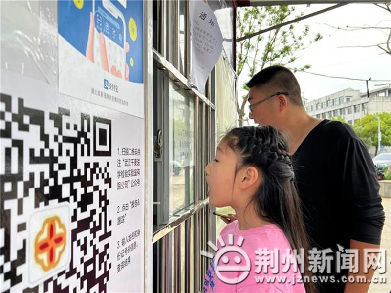 上午八點半,沙市區(qū)美年大健康核酸檢測點前排起了長龍,不少學生在家長的陪同下前來做核酸,為開學做準備。