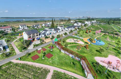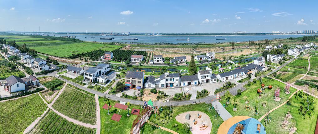 8月26日,無人機(jī)航拍公安縣楊家廠鎮(zhèn)長江村南五洲民垸“憶江南·田園慢生活體驗(yàn)區(qū)”,村舍整齊,道路通暢,遠(yuǎn)處的長江緩緩流淌,美景盡收眼中。