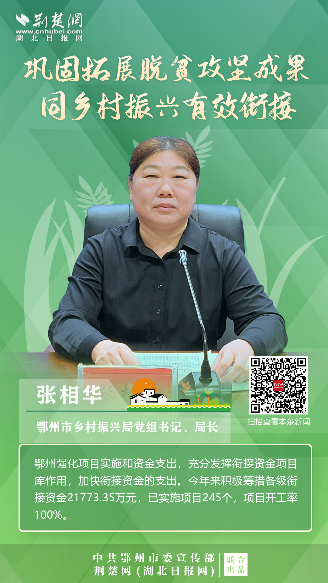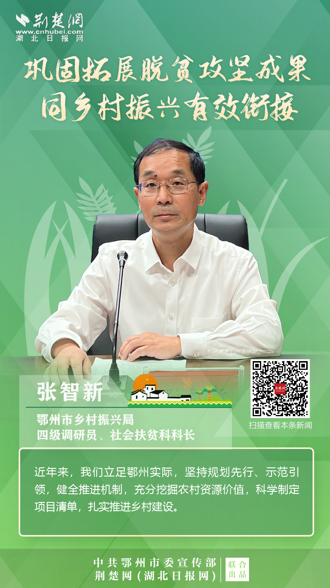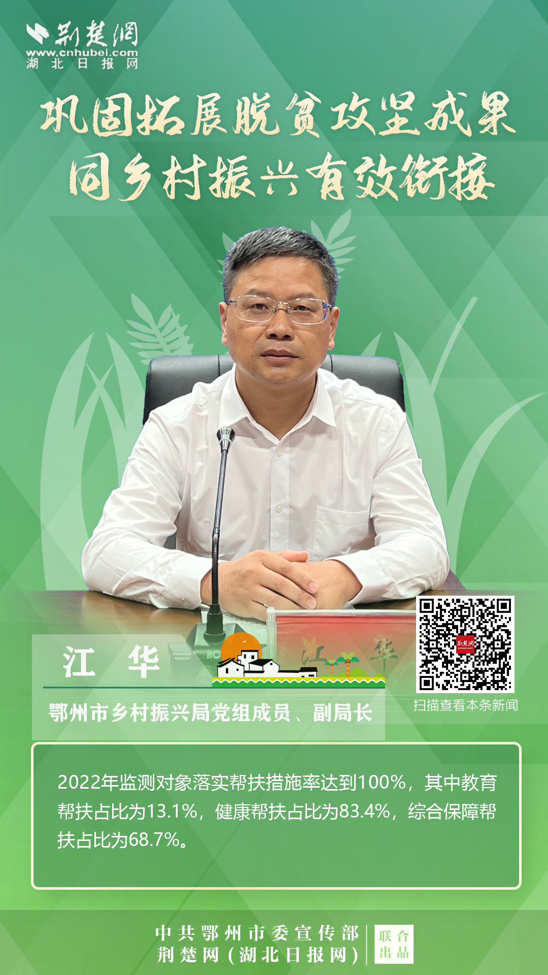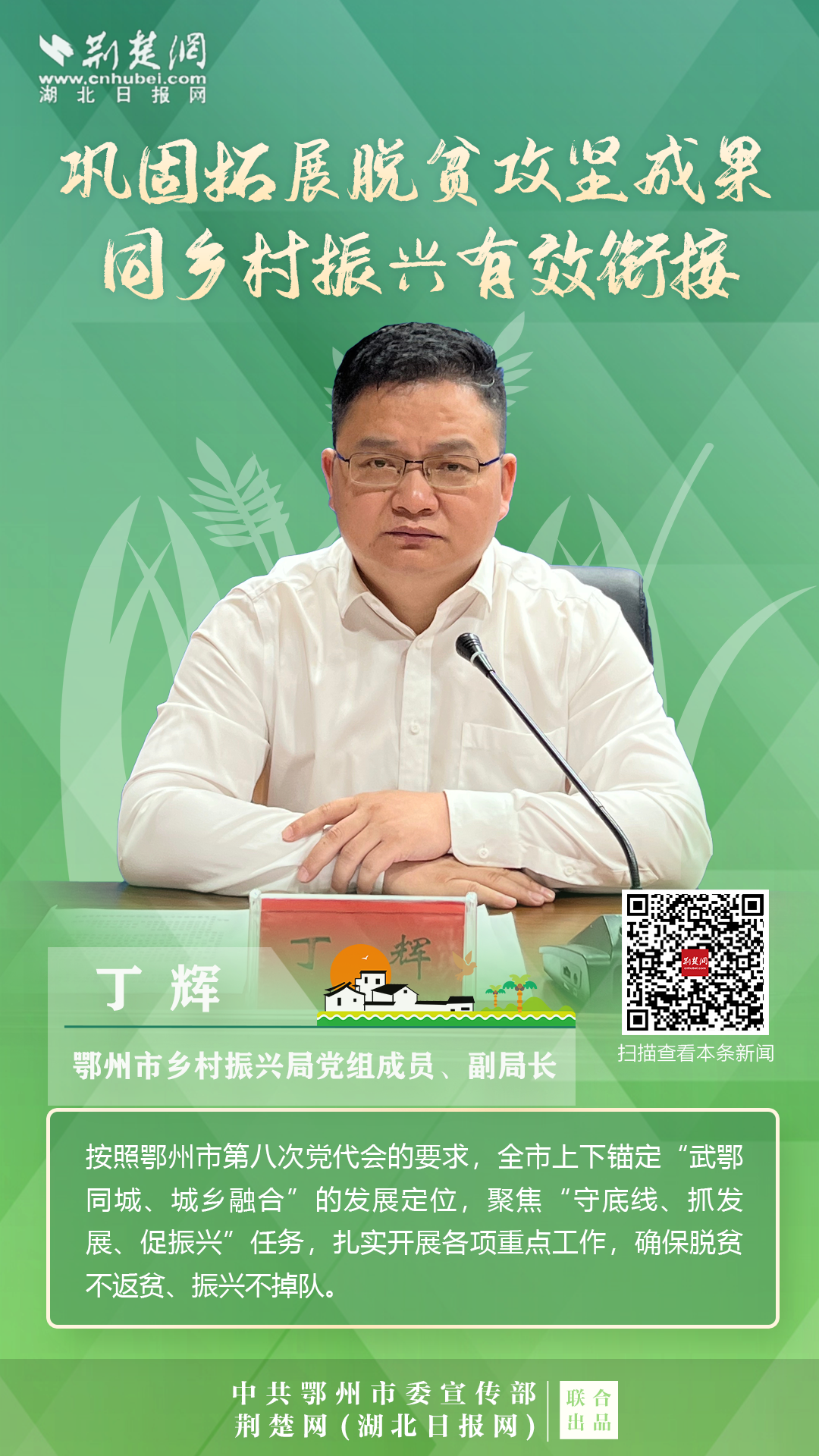 打贏脫貧攻堅戰(zhàn)以來,按照鄂州市第八次黨代會的要求,全市上下錨定“武鄂同城、城鄉(xiāng)融合”的發(fā)展定位,聚焦“守底線、抓發(fā)展、促振興”任務(wù),扎實開展各項重點工作,確保脫貧不返貧、振興不掉隊。