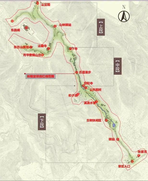 據(jù)了解,東方古道豹子洞區(qū)域包含彌陀寺、下寺、陸東方、豹子洞等多景點(diǎn),林木茂密、山澗清流,古道滄桑、環(huán)境優(yōu)美。結(jié)合城市更新背景及張家灣民俗文化村的建設(shè),未來將是極具游覽價(jià)值的新景區(qū)。