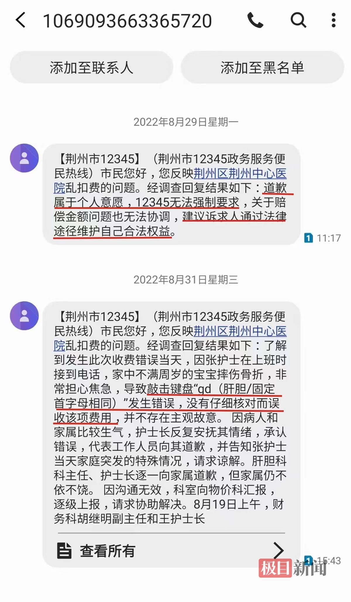 荊州市中心醫(yī)院回應極目新聞記者稱,林女士住院期間發(fā)生的錯誤收費問題不屬于醫(yī)療事故,屬于內(nèi)部管理問題。目前,醫(yī)院相關科室已向張先生表示歉意,雙方正進一步溝通。