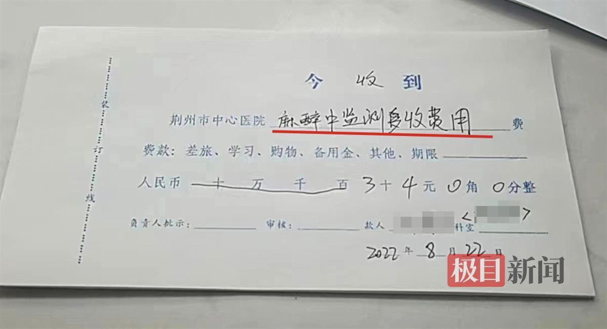荊州市中心醫(yī)院向張先生退還了“麻醉中監(jiān)測”項目多收的費用。(受訪者供圖)