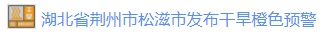 松滋市氣象臺(tái)2022年09月09日15時(shí)51分發(fā)布干旱橙色預(yù)警信號(hào):目前,松滋市已達(dá)重度氣象干旱,預(yù)計(jì)未來(lái)一周將持續(xù)發(fā)展,請(qǐng)注意防范。(預(yù)警信息來(lái)源:國(guó)家預(yù)警信息發(fā)布中心)