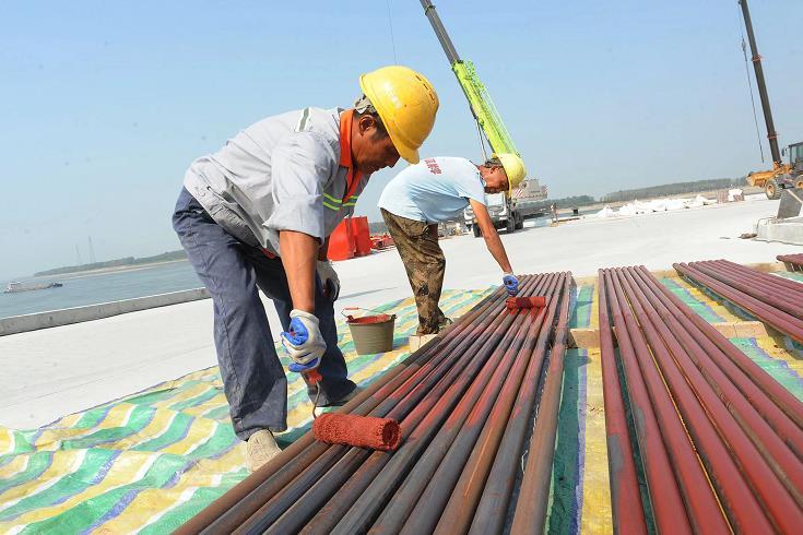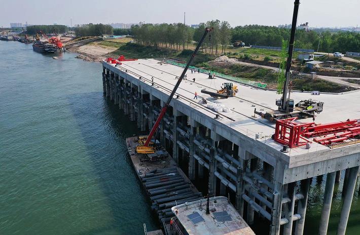 9月12日,荊州開發(fā)區(qū)木沉淵工業(yè)綜合碼頭建設(shè)整體結(jié)構(gòu)已基本完工,123根立柱全部安裝到位,107米長的平臺初現(xiàn)雛形,工人己轉(zhuǎn)入到江邊安裝船舶防撞設(shè)施。