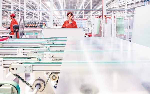 9月7日,荊州經(jīng)濟(jì)開發(fā)區(qū),員工在湖北億鈞耀能新材股份公司智能化生產(chǎn)線上趕制光伏玻璃。這家省級(jí)專精特新“小巨人”企業(yè),從傳統(tǒng)玻璃到特種節(jié)能玻璃、再到光伏新材料,不斷延伸產(chǎn)業(yè)鏈發(fā)展鏈條。目前,該公司投資40余億元打造的光伏新材產(chǎn)業(yè)園,一期已投產(chǎn),二期正在進(jìn)行收尾施工。(記者 薛婷 通訊員 張夢(mèng)瑤 攝)