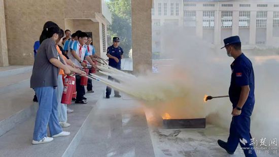 學(xué)生們學(xué)習(xí)滅火器使用方法。通訊員 供圖