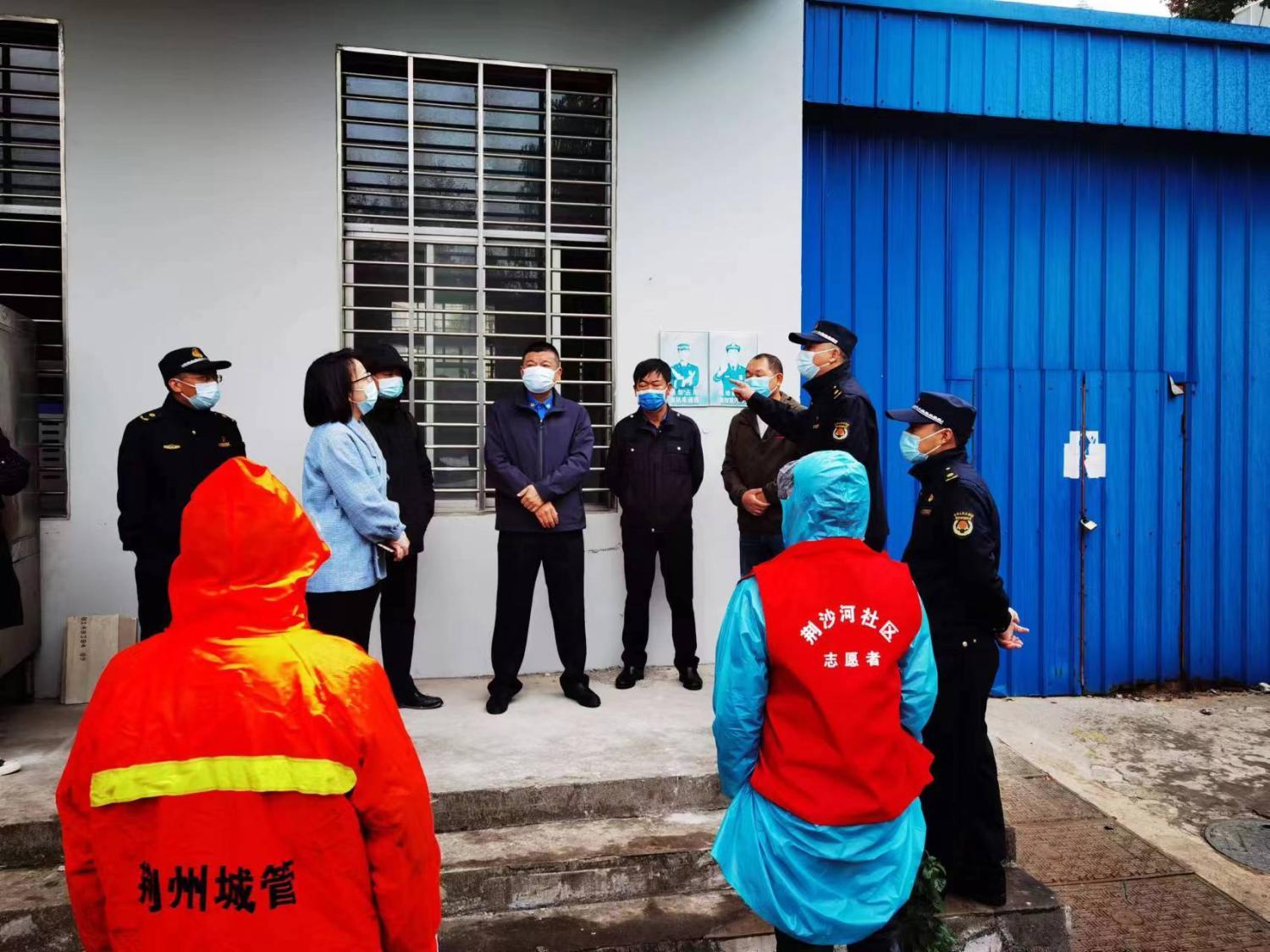 同時,下沉社區(qū)的沙市城管人聞令而動、主動作為,紛紛轉(zhuǎn)變?yōu)椤皹菞澟挪橹驹刚摺薄昂怂釞z測秩序員”“出入口值守員”“信息錄入員”“防疫宣傳員”……他們牽手社區(qū)工作者以實際行動密織社區(qū)防控網(wǎng)。
