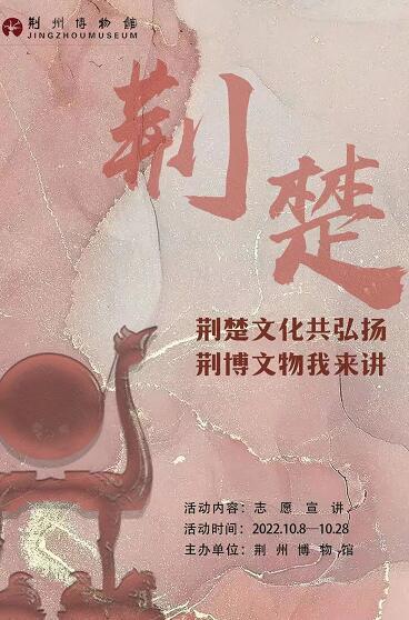 記者從荊州博物館獲悉,博物館陳列大樓即將完成維修改造和展陳升級(jí),將以嶄新的面貌對(duì)公眾開(kāi)放,即日起至10月28日,荊州博物館開(kāi)展“荊楚文化共弘揚(yáng),荊博文物我來(lái)講”線上志愿宣講活動(dòng),讓疫情期間居家的市民也能參與其中,爭(zhēng)當(dāng)荊楚文化傳播者。