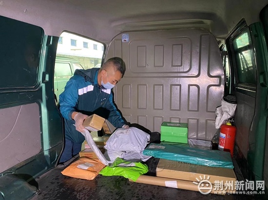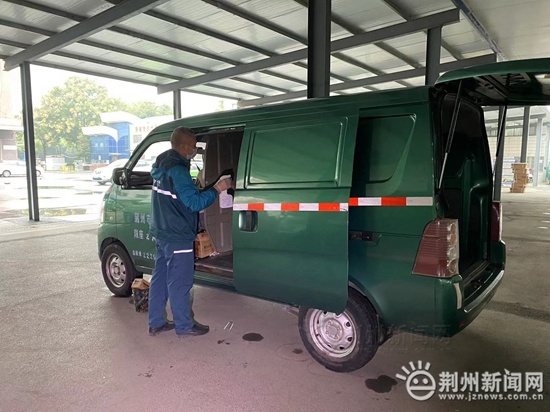 在中國郵政集團有限公司荊州市沙市區(qū)分公司太岳快遞攬投站,投遞員馬士平正在對車輛進行消殺,車廂、車門等部位一處不落。收檢好快遞,馬士平出發(fā)了,他首先來到了首輔路,跟附近客戶打去了電話。快遞很順利送到了客戶手中。