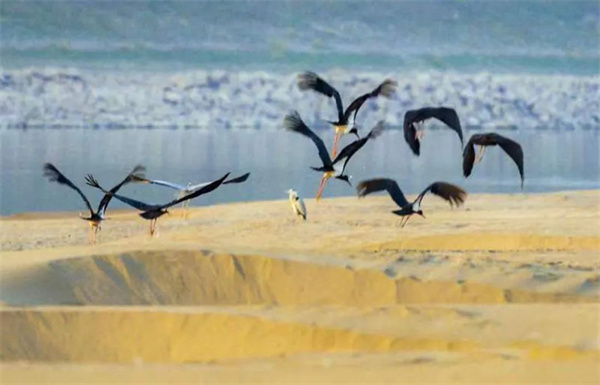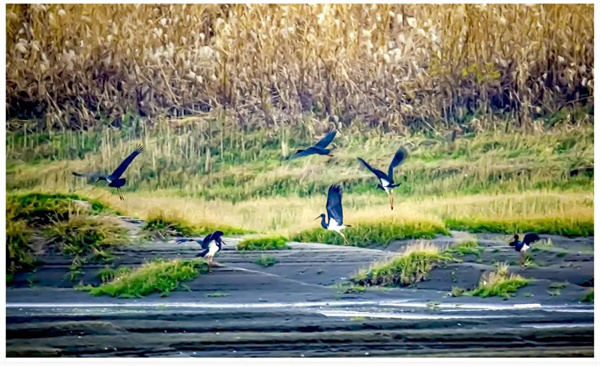 近日,石首市野保志愿者在石首長(zhǎng)江洲灘發(fā)現(xiàn)了一群被譽(yù)為“鳥中大熊貓”的國(guó)家一級(jí)保護(hù)動(dòng)物黑鸛。