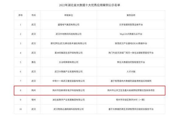 近日,省經(jīng)濟(jì)和信息化廳公示了“2022年湖北省人工智能、大數(shù)據(jù)、區(qū)塊鏈?zhǔn)髢?yōu)秀應(yīng)用案例”和“2022年湖北省工業(yè)軟件十大優(yōu)秀應(yīng)用案例”入圍企業(yè)名單。其中,我市申報的荊州市公共衛(wèi)生及重大疾病預(yù)知預(yù)警應(yīng)急體系榮獲“2022年湖北省大數(shù)據(jù)十大優(yōu)秀應(yīng)用案例”,“賽云制造中小企業(yè)智能制造MES系統(tǒng)”榮獲“2022年湖北省工業(yè)軟件十大優(yōu)秀應(yīng)用案例”。