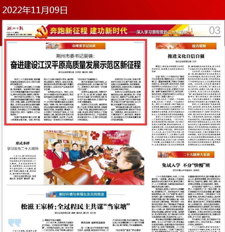 荊州市委書(shū)記吳錦認(rèn)為,“關(guān)鍵是要牢牢把握高質(zhì)量發(fā)展這個(gè)首要任務(wù),完整、準(zhǔn)確、全面貫徹新發(fā)展理念,自覺(jué)在全省建設(shè)全國(guó)構(gòu)建新發(fā)展格局先行區(qū)中知方位、明路徑、找答案,加快建設(shè)江漢平原高質(zhì)量發(fā)展示范區(qū),既為一域增光、又為全局添彩?!?/p>