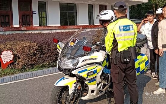 此外,交警大隊警官們與學(xué)生進行了互動,現(xiàn)場指導(dǎo)學(xué)生如何正確佩戴頭盔和騎行。