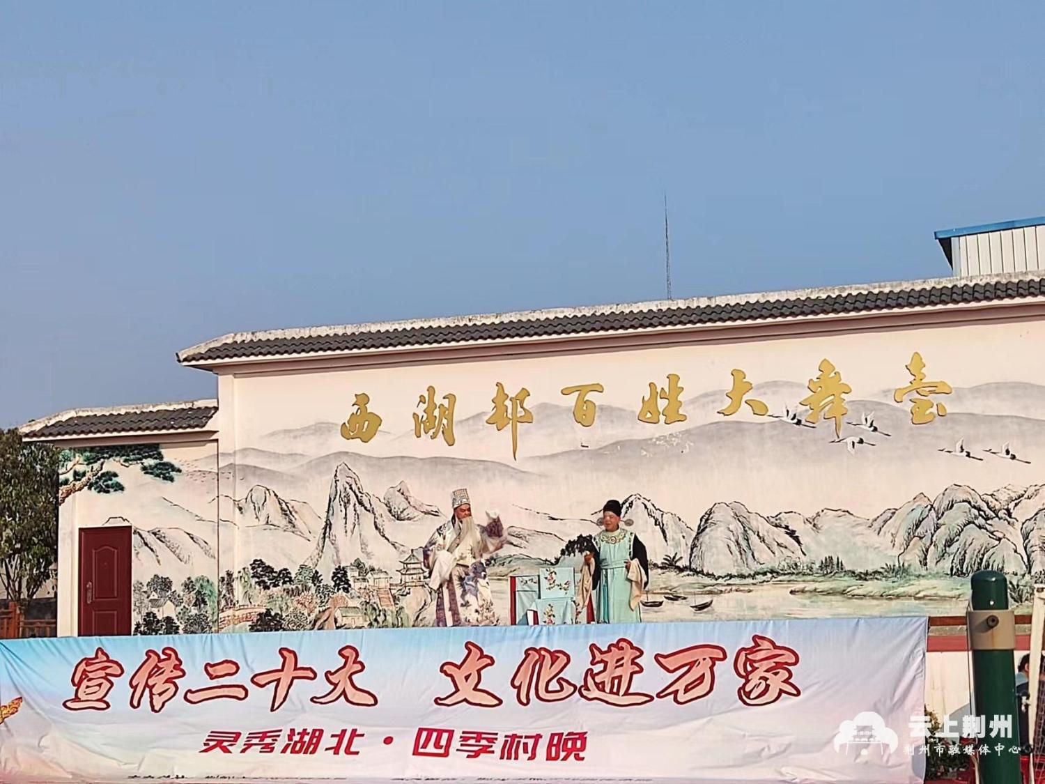 荊州新聞網(wǎng)消息(記者 孫煜瑤 郭佩月)為豐富基層新時(shí)代文明實(shí)踐的內(nèi)容和形式,提升群眾幸福感和文化滿意度。近日,由荊州市文化和旅游局主辦,荊州市地方戲曲傳承院承辦的“宣傳二十大 文化進(jìn)萬家”活動在沙市區(qū)岑河鎮(zhèn)西湖村上演。