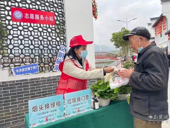 活動(dòng)現(xiàn)場,大冶市新時(shí)代文明實(shí)踐中心還設(shè)置了志愿服務(wù)小站,開展“垃圾換門票”“煙頭換綠植”的文明旅游主題活動(dòng)。