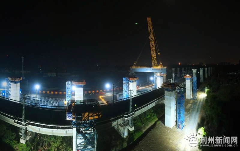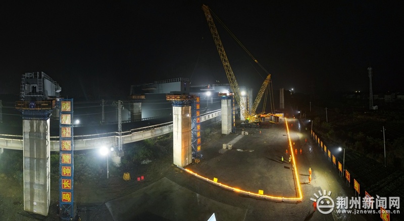 圖為11月15日凌晨1點,荊荊鐵路跨漢宜鐵路控制性工程開始施工。