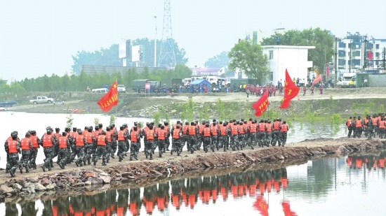 市國防教育宣傳中心全方位展現(xiàn)長江防汛搶險(xiǎn)綜合演練上荊州民兵風(fēng)采。