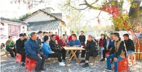 同強(qiáng)村古樸樹(shù)下,村民正在議事。 (通訊員 明雄 攝)