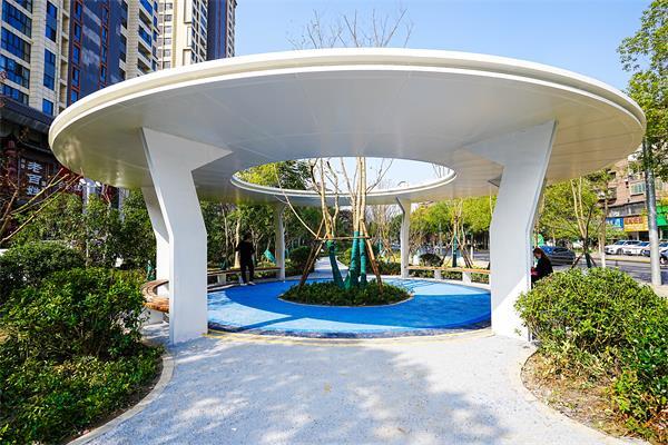 林下小徑、白色涼亭、白亭中的一株落葉大喬木、彩色塑膠休閑區(qū)、E型停車位……尤其值得一提的是,綠地中央的圓形涼亭環(huán)繞著一棵姿態(tài)優(yōu)美的孤植大樹,設(shè)計十分獨特。涼亭,是休憩場所、過渡空間,同時作為活動場地、綠地、園路之間不同空間感受的轉(zhuǎn)換“樞紐”。這一設(shè)計巧妙地在草坪、樹林間,新增游人活動場地,造型空靈、風(fēng)景宜人,為周邊市民提供日常休閑活動場所,還吸引了許多沙市十一中的家長在此等候孩子放學(xué)。(記者王子瑤 通訊員韓慶軍)