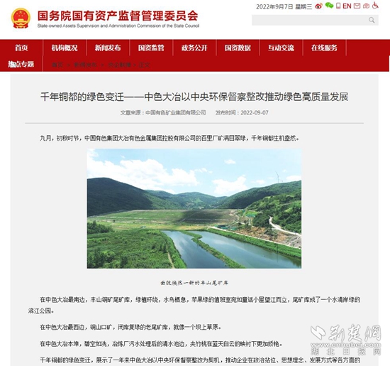 荊楚網(湖北日報網)訊(通訊員 王剛 陶三保)12月1日,從中色大冶獲悉,在中央環(huán)保督察通報公司典型案例一周年之際,反映中色大冶環(huán)保督察整改、綠色發(fā)展成效的通訊《千年銅都的綠色變遷》在國資委網站、中國有色金屬報等多家主流媒體和行業(yè)媒體上刊發(fā)。