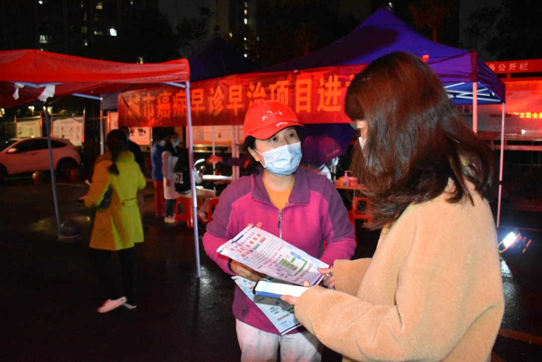 “45至74歲市民都可以參加評(píng)估,篩查癌種包括肺癌、乳腺癌、上消化道癌、結(jié)直腸癌、肝癌……”11月23日、24日晚上,荊州市第一人民醫(yī)院西院、荊州市腫瘤醫(yī)院組織志愿者深入解放街道多個(gè)社區(qū),開(kāi)展年度“城市癌癥早診早治項(xiàng)目”宣傳活動(dòng)。