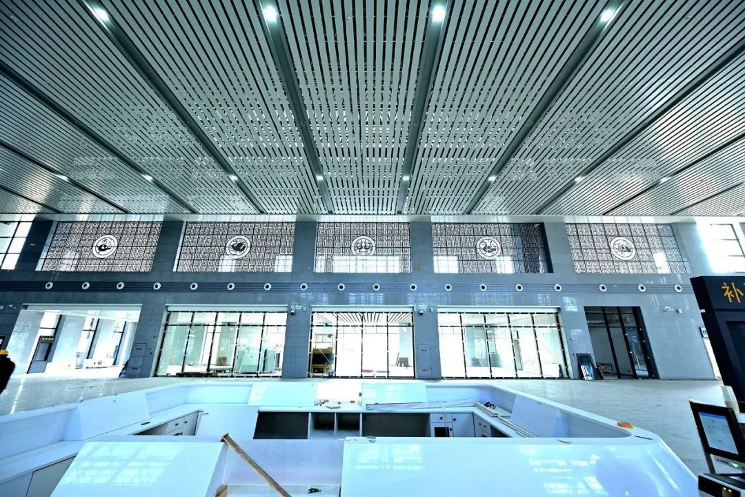 新建松滋站房、外立面采用大挑檐、斗拱、高臺(tái)等荊楚建筑元素,并將荊楚文化中的騎虎、鳳凰、朱雀、玄武等符號(hào)運(yùn)用到候車廳內(nèi)裝飾上,既呈現(xiàn)新時(shí)代文化特點(diǎn),又傳承荊楚傳統(tǒng)文化地方特色。同時(shí),新建站房在候車廳還設(shè)置了綜合服務(wù)臺(tái)一座,創(chuàng)造性地采用綜服合一、售服合一、驗(yàn)檢合一、進(jìn)出合一的“四合一”模式,實(shí)現(xiàn)一廳進(jìn)站、一廳驗(yàn)檢、一廳售候。新車站建成后,預(yù)計(jì)可同時(shí)容納1400人候車,滿足春運(yùn)高峰期間旅客出行候車需求。