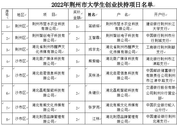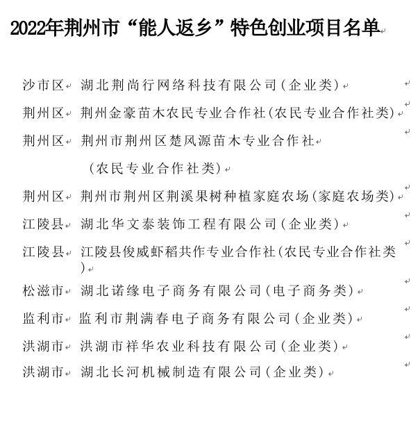 荊州新聞網(wǎng)消息:荊州市人社局近日發(fā)文,對(duì)2022年荊州市“能人返鄉(xiāng)”實(shí)績突出鄉(xiāng)鎮(zhèn)、荊州市“能人返鄉(xiāng)”特色創(chuàng)業(yè)項(xiàng)目、荊州優(yōu)秀勞務(wù)品牌、勞務(wù)品牌領(lǐng)軍企業(yè)、荊州市大學(xué)生創(chuàng)業(yè)扶持項(xiàng)目予以認(rèn)定,并發(fā)放獎(jiǎng)補(bǔ)資金。