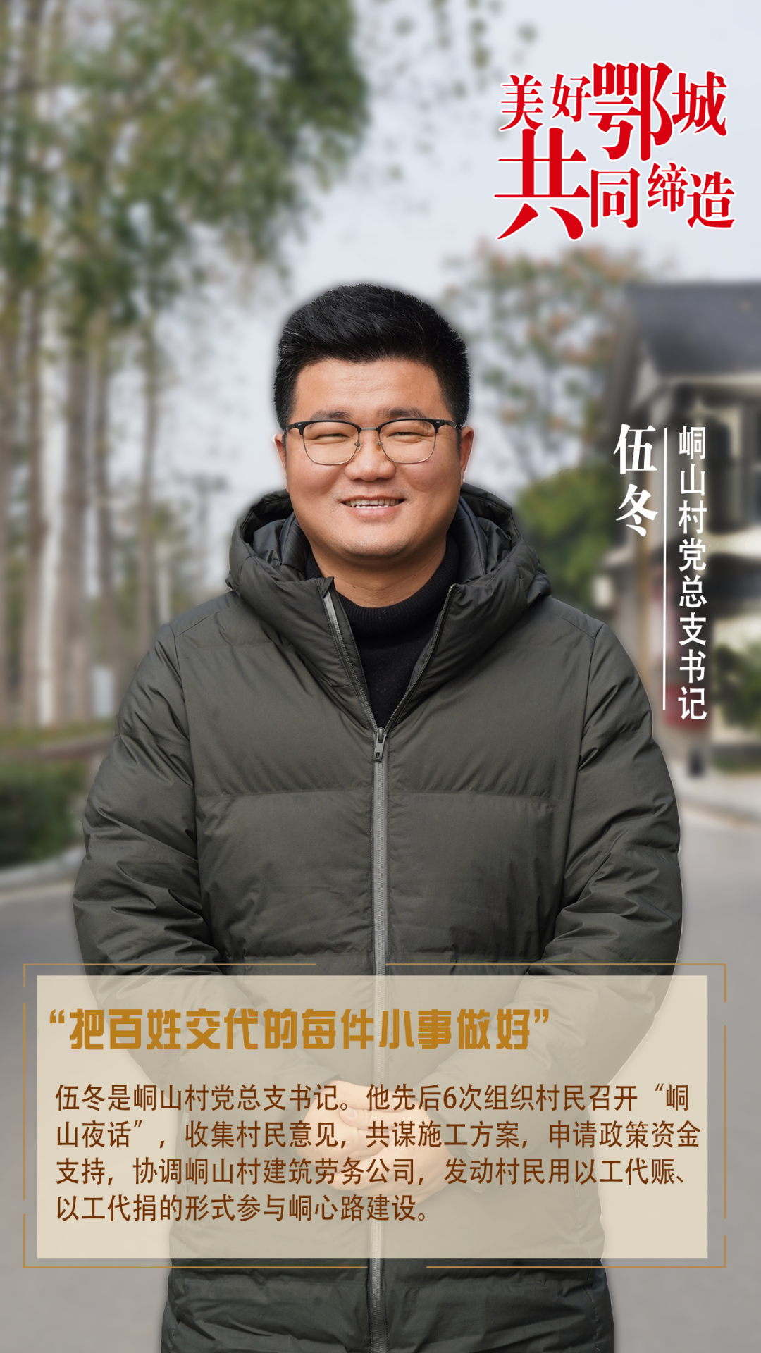 伍冬是峒山村黨總支書(shū)記。他先后6次組織村民召開(kāi)“峒山夜話”,收集村民意見(jiàn),共謀施工方案,申請(qǐng)政策資金支持,協(xié)調(diào)峒山村建筑勞務(wù)公司,發(fā)動(dòng)村民用以工代賑、以工代捐的形式參與峒心路建設(shè)。