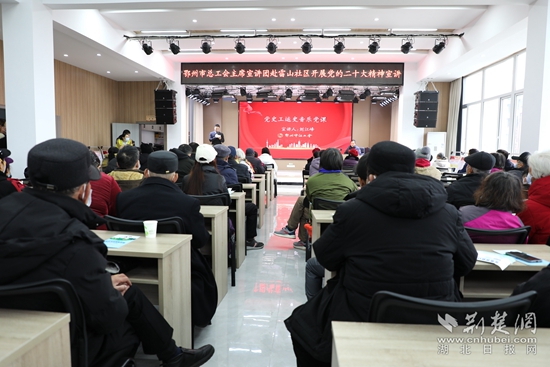 荊楚網(wǎng)(湖北日?qǐng)?bào)網(wǎng))訊(通訊員 劉學(xué)文 魏君)12月28日,鄂州市總工會(huì)主席宣講團(tuán)赴雷山社區(qū),開(kāi)展黨的二十大精神宣講活動(dòng)。