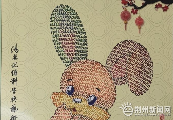 湯英先生是湖北荊州人,1954年生,中共黨員,中國心理學會會員,中國老年書畫家協(xié)會會員,荊州市心理學會記憶科學研究室主任,默寫圓周率20088位數(shù)世界紀錄保持者,被譽為世界記憶奇人。每年農(nóng)歷新年前夕,湯英先生都要創(chuàng)作一幅圓周率書畫藝術的生肖掛歷,祝福家國平安吉祥,至今已堅持有7年。2017年、2018年、2019年、2020年、2021年、2022年他分別創(chuàng)作出圓周率書畫生肖掛歷《雞年大吉》《旺狗賀歲》《福豬獻寶》《金鼠送?!贰秳排^蹄》《虎蘊吉祥》。