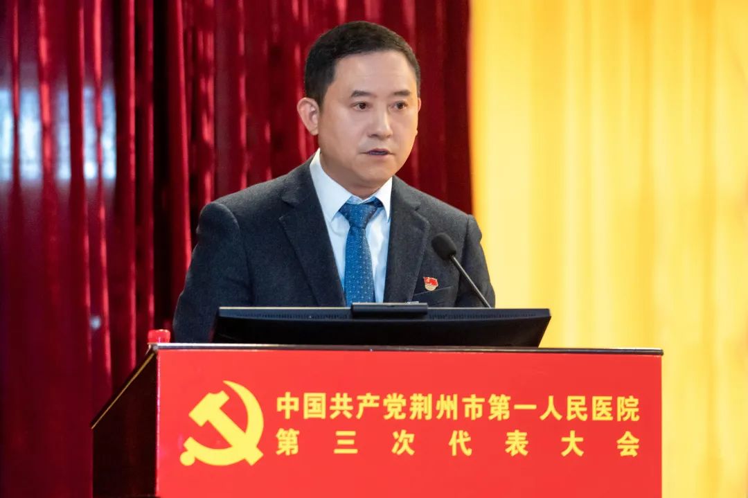 荊州市衛(wèi)健委黨組書記徐莉,黨組成員、副主任陳雪松出席大會,醫(yī)院全體黨員代表參加會議,民主黨派、無黨派人士代表等列席。