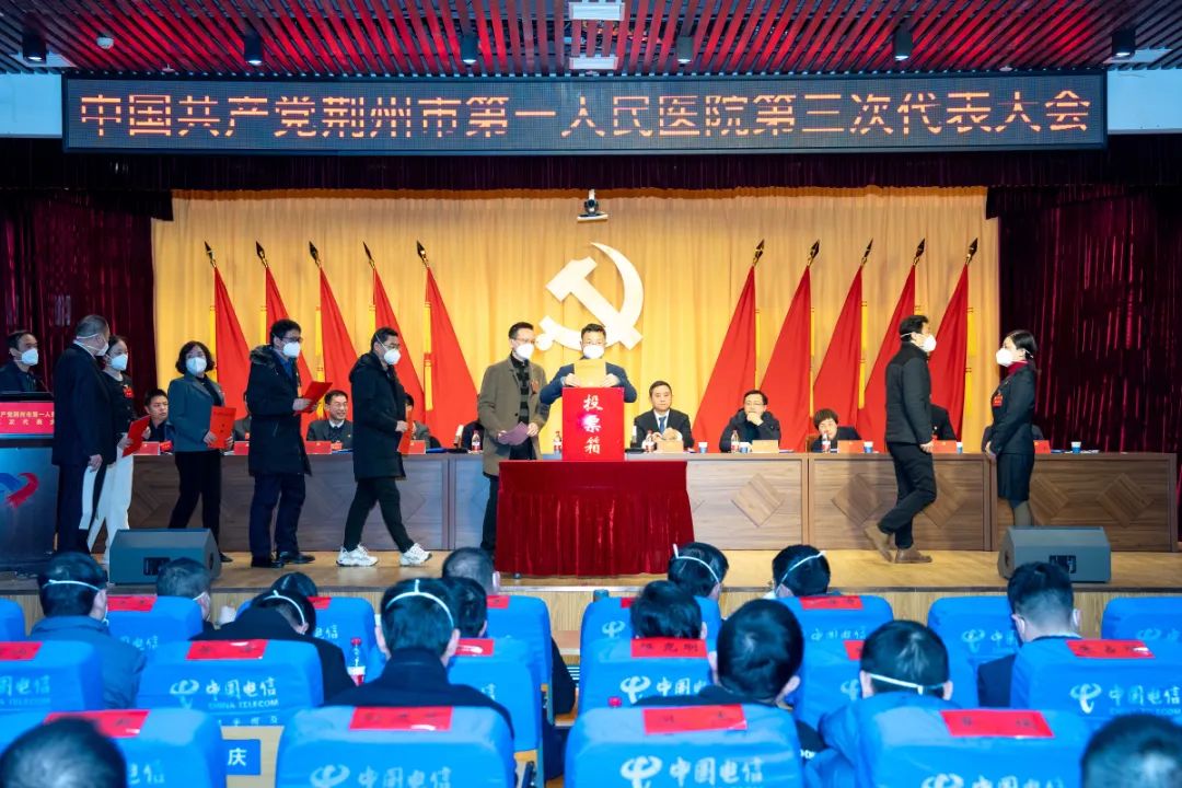 易村犍同志宣讀《中國共產(chǎn)黨荊州市第一人民醫(yī)院第三次代表大會選舉辦法》并由大會表決通過,宣讀了中國共產(chǎn)黨荊州市第一人民醫(yī)院委員會委員候選人名單、中國共產(chǎn)黨荊州市第一人民醫(yī)院紀(jì)律檢查委員會委員候選人名單。