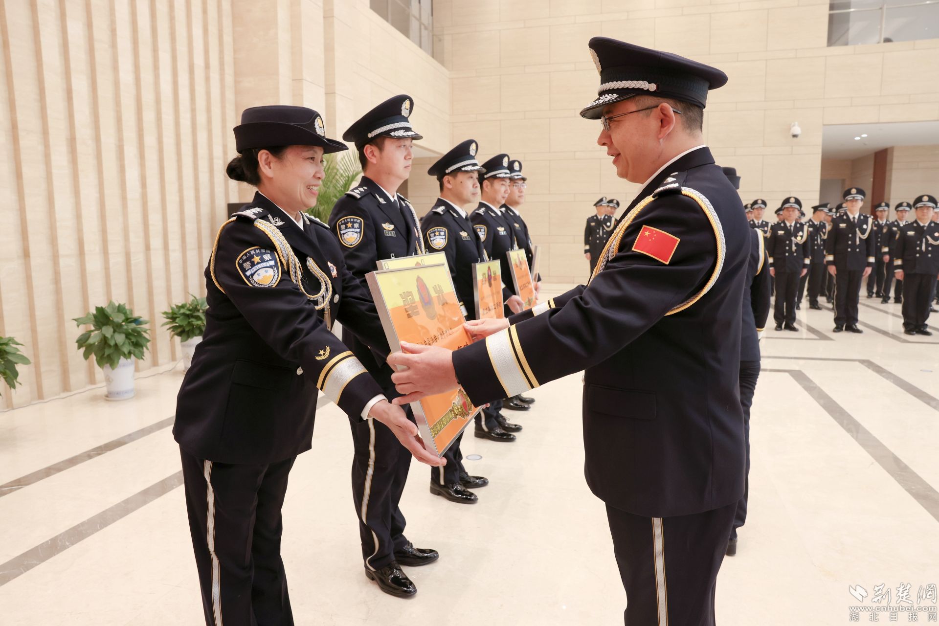黃石市副市長(zhǎng)、公安局局長(zhǎng)黃志勇為先進(jìn)集體代表頒獎(jiǎng)。通訊員 供圖